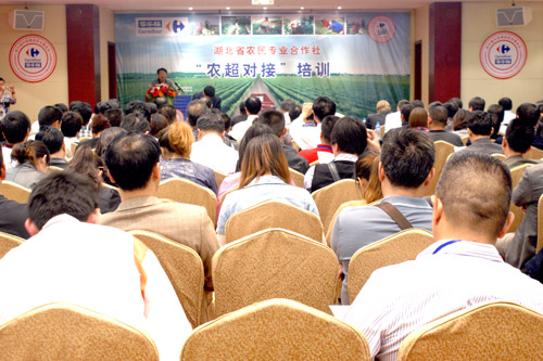 5月25日,由省商務(wù)廳、省農(nóng)業(yè)廳聯(lián)合主辦,家樂福承辦的湖北省農(nóng)民專業(yè)合作社“農(nóng)超對(duì)接”培訓(xùn)班暨“農(nóng)超對(duì)接”洽談會(huì)在孝感市隆重舉行,來自全省17個(gè)市、州農(nóng)民專業(yè)合作社理事長參加培訓(xùn)。